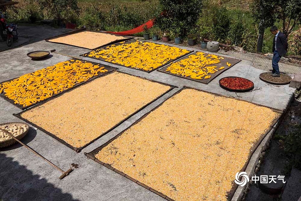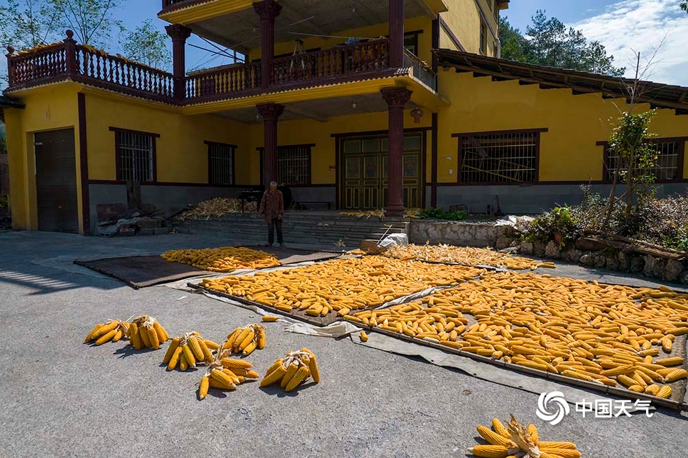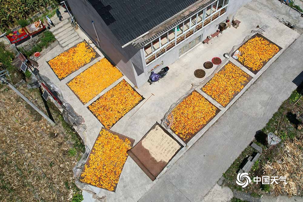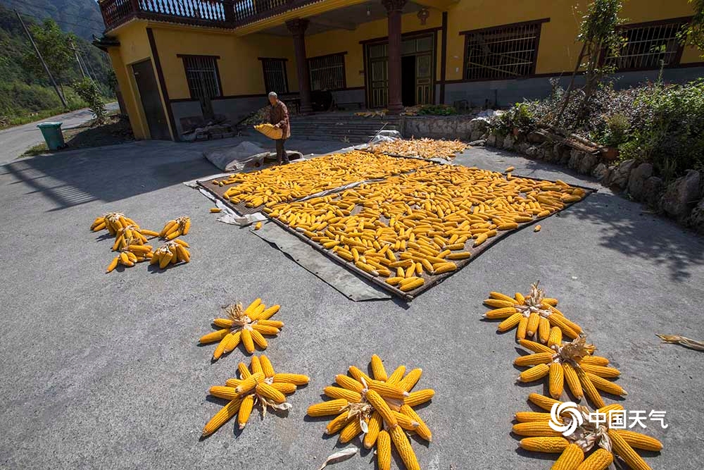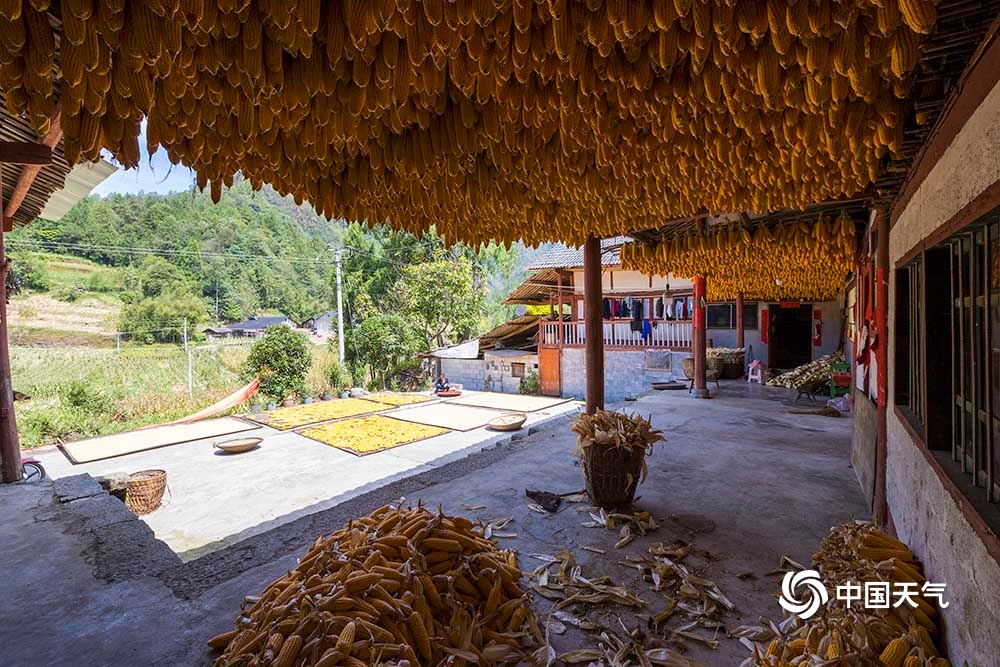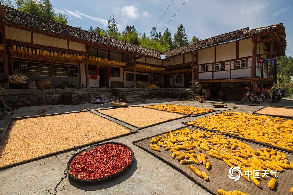 9月6日,重庆武隆天气晴好,接龙乡庙垭口的村民纷纷将丰收的粮食拿出来晾晒,呈现出一幅幅色彩斑斓的“晒秋”图。(凌舸智/摄)
