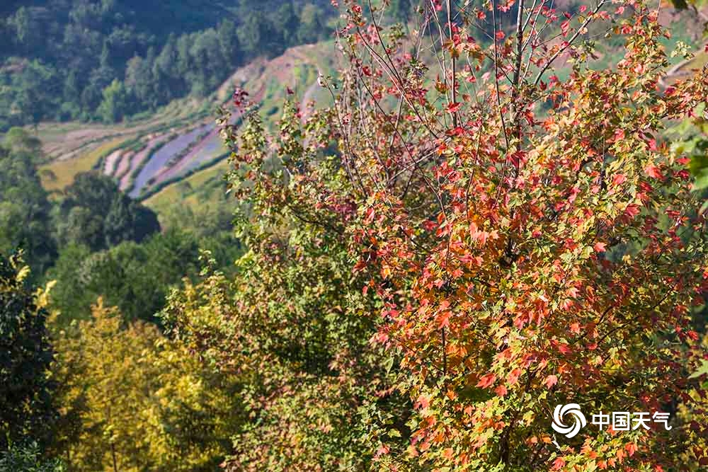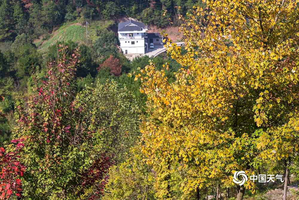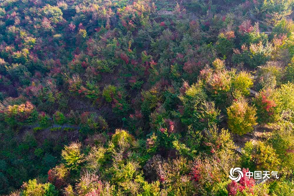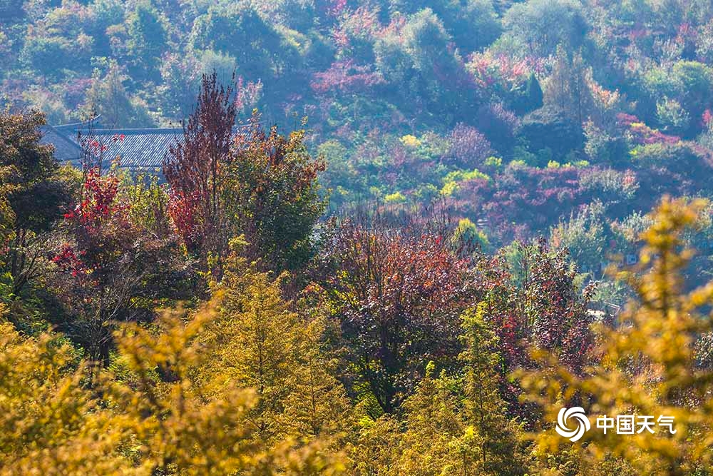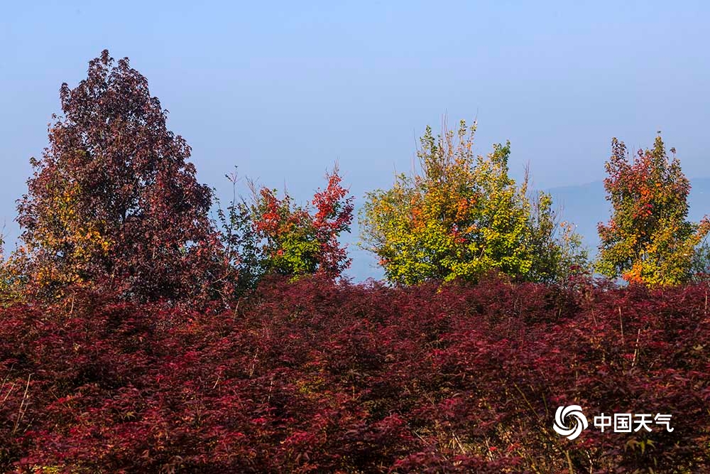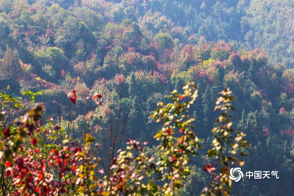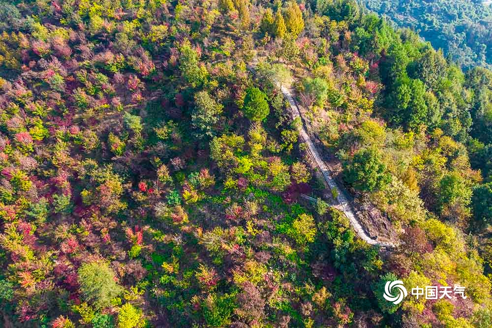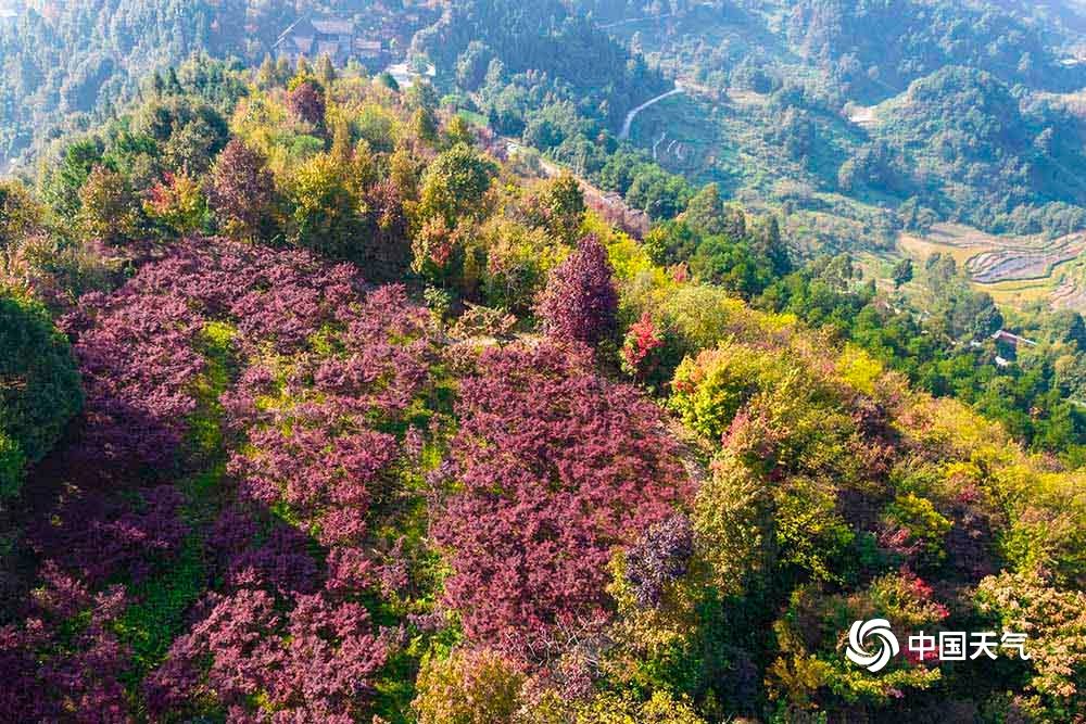 ​10月18日,重庆丰盛镇的彩色树林如打翻了秋天的调色板,美如童话世界。(凌舸智/摄)