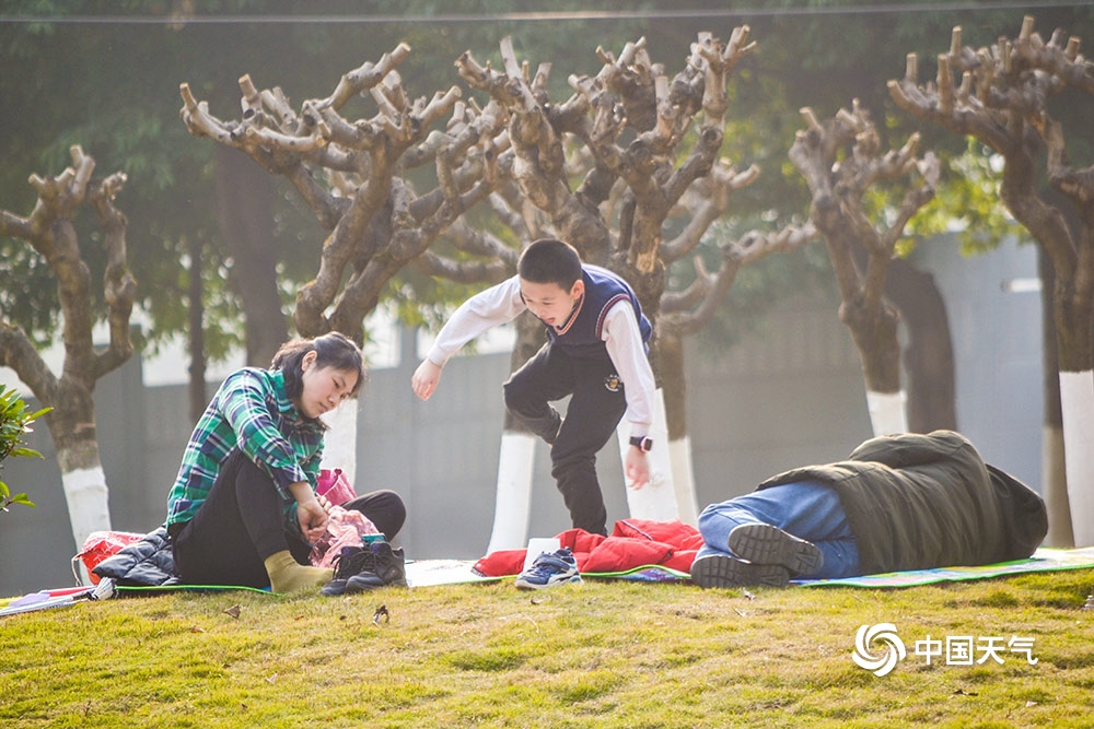 遛娃晒太阳!重庆市民乐享周末阳光