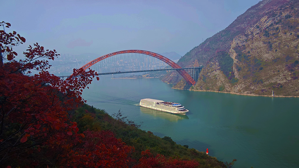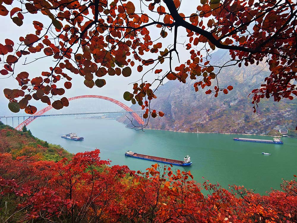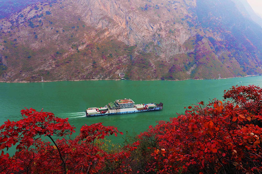 中国天气网讯 12月7日是二十四节气中的大雪。重庆巫山境内长江三峡巫峡两岸红叶如火似霞,与碧绿的江水,陡峭的山峰,过往的船只等构成一幅壮美的山水生态画卷,美不胜收。