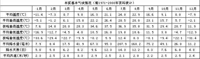 本溪属于中温带湿润气候区,全地区年平均气温为6.1℃-7.8℃,年平均降水量为800-900毫米。总的来说春天风和日丽,夏季稍热多雨,秋季天高气爽,冬天冰封雪飘。