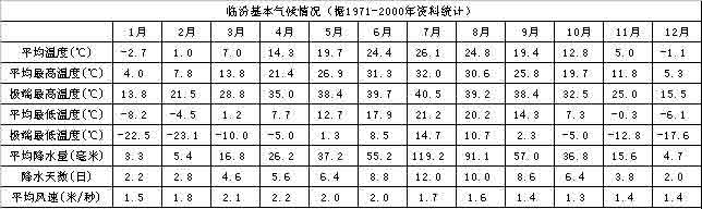 临汾市地处半干旱半湿润季风气候区,属温带大陆性气候,四季分明,雨热同期。但由于受地形影响,山区平川气候差异较大,气候特征迥异。临汾市气温的一般特点是冬寒夏热。气温的年较差和日较差均大。