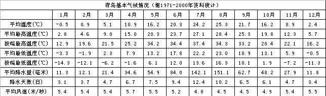 青岛气候有着鲜明的特点,那就是:四季分明,夏短冬长;夏无酷暑,冬少严寒;降水适中,热量充足;春夏多雾,冬春风大。青岛夏季较内地短,一年平均只有80天,夏季平均气温为23摄氏度,最热的8月平均气温为25.1摄氏度,由于受海洋影响,比较凉爽,是人们避暑,疗养和游泳的最好季节。