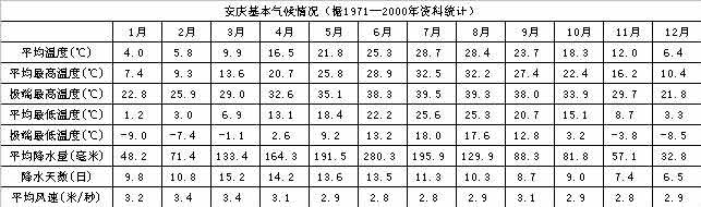 安庆位于安徽省西南部,长江下游北岸,属于亚热带季风性湿润气候,四季分明,气候温和,雨量适中,霜少雪稀, 是著名的"鱼米之乡"。安庆的年平均气温约为17℃,冬季各月的平均气温均在5℃左右,并不算冷;夏季各月的平均温度在25-28℃左右,极端最高气温也未超过40℃,不算太热,无霜期在250天左右。安庆降水充沛,年平均降水量1300mm-1500mm,主要集中在4-8月,占年降水总量的70%以上,特别是6-7月的梅雨期间,常有大到暴雨出现。