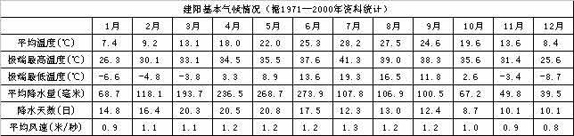 朱熹故里建阳市位于武夷山南麓,另称潭城,是福建省最古老的五个县邑之一,历史上曾以“图书之府”和“理学名邦”闻名于世,是“闽北粮仓”、“茶果基地”、“林海竹乡”。远在4000年以前的新石器时代,就有先民在此劳动、繁衍、生息。东汉建安十年(公元205年)置建平县。朱熹晚年定居考亭讲学,四方学子不远千里前来求学,研究理学,著书立说,与蔡元定等创建学术史上令人瞩目的“考亭学派”,考亭也因此喻为“南闽阙里”,建阳称为“理学之乡”。宋代以来麻沙、书坊雕版印刷全国闻名,是宋代三大印刷中心之一,有“图书之府”美称。建阳市人杰地灵,世界法医学鼻祖宋慈是建阳童游人建阳名胜古迹有革命遗址3处、古文化遗址132处、古建筑12处、古墓6处、古石刻3处。其中省级文物保护单位3处,市级文物保护单位17处。建阳属中亚热带季风性气候,光热资源丰富。冬短夏长,气候宜人,静风多,温差大,雨季集中。境内满目青山,层林叠翠,森林覆盖率75.1%,各种林副产品如松脂、笋、香菇等十分丰富。