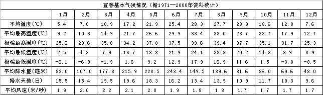 宜春全市年平均气温在16℃-18℃之间,东南部较高,西北部较低;冬季最冷月1月平均气温5℃左右,南部高于北部;夏季最热月7月平均气温28℃左右,东部高于西部;春秋季各县(市、区)气温差异较夏季小,比冬季大。宜春的平均年降水量为1600mm,主要集中在4-6月,占年总量近50%;受季风进退的影响,一般上半年各月降水量呈逐月增加,下半年各月降水量呈递减趋势。