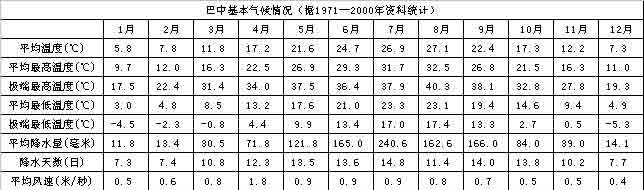 巴中地势北高南低,海拔最低208.3米,最高2507米。属亚热带湿润气候,四季分明,雨量充沛,光照适宜,无霜260--280天。年均气温最高17摄氏度。