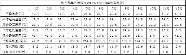 梅州市位于广东省东北部,东北邻福建省的武平、上杭、永定、平和4县,西北接江西省寻乌县,西面连广东省河源市的龙川县、东源县、紫金县,西南、南面与汕尾市的陆河县、揭阳市的榕城区、揭西县相接,东南面和潮州市郊区、饶平县相连。全境地理座标位于东经115。18'至116。56'、北纬23。23'至24。56'之间,全市总面积15836平方公里。 梅州市属亚热带季风气候区,是南亚热带和中亚热带气候区的过渡地带。平远、蕉岭和梅县北部为中亚热带气候区南缘,五华、丰顺、兴宁、大埔和平远、蕉岭、梅县 南部为南亚热带气候区。这种地处低纬,近临南海、太平洋和山地的特定地形影响,形成夏日长、冬日短,气温高、冷热悬殊、光照充足、气流闭塞、雨水丰盈且集 中的气候。 梅 州有较多的名胜古迹和人文景观。始建于唐代的千年古刹灵光寺、阴那山五指峰、松口元魁塔、泮坑瀑布、蕉岭长潭一线天、兴宁合水水库、神光山、大埔丰溪自然 保护区、平远南台山、五指石、五华益塘水库、丰顺温泉及千佛塔等景点,均以其雄、奇、幽、秀之特色吸引许多游客。历史名流文天祥、祝枝山、韩愈等在这些名 胜留下足迹。