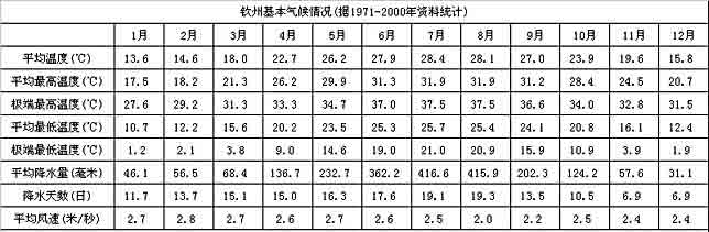 钦州属亚热带气候,具有亚热带向热带过渡性质的海洋季风特点。年日照时为1800小时左右,年平均气温为21-23℃绝大部分地区无霜期在350天以上,年降水量为1600毫米,雨量充沛,极适合农作物生长。
