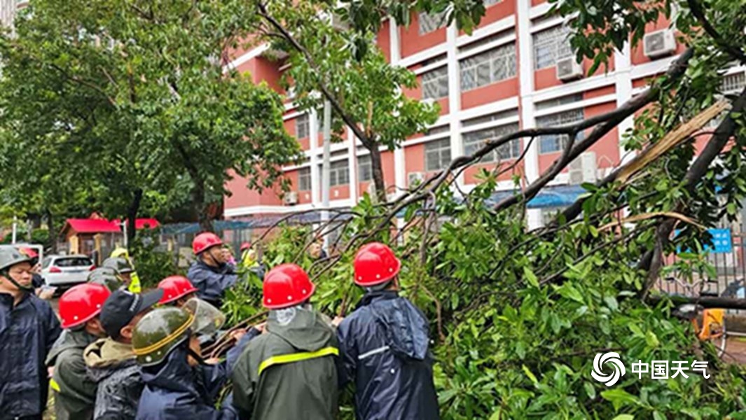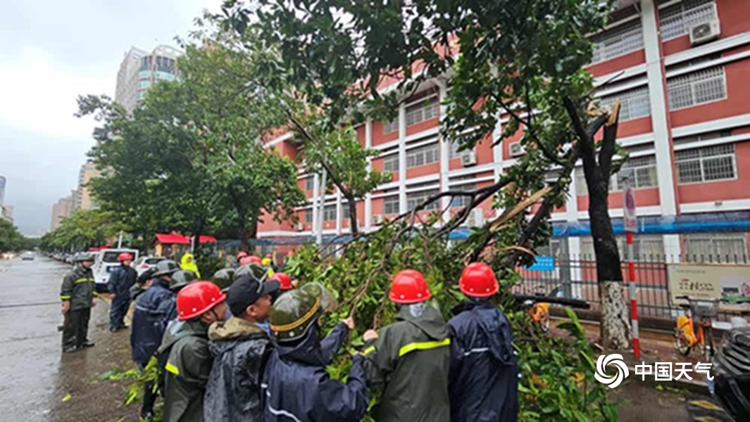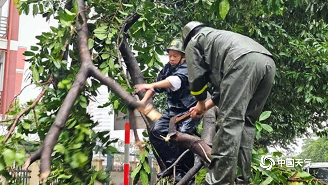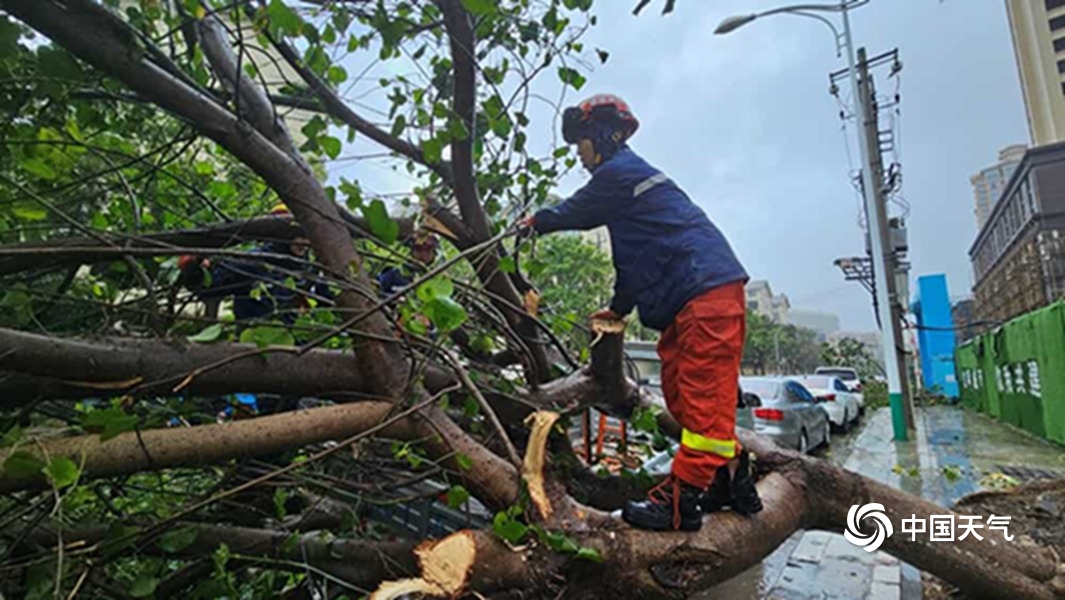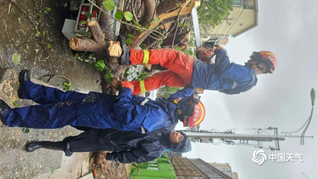 中国天气网讯 受“杜苏芮”台风影响,树木吹倒受损,严重影响道路交通。莆田市荔城区拱辰街道应急队伍及时清理被吹到大树、清淤。(图:郭俊斌  文:蔡晗)