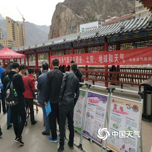 今年3月23日,舟曲县气象局围绕“太阳、地球和天气”这一主题,在舟曲县城关桥广场开展了世界气象日科普宣传活动。通过系列宣传活动活动,提高了公众对气象的认识和了解,增强了群众的气象防灾减灾意识和法律意识,取得了良好的社会效益,受到了广大群众的热烈欢迎。(魏娟娟)