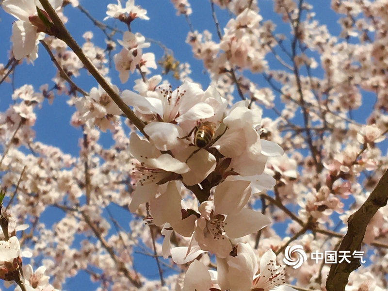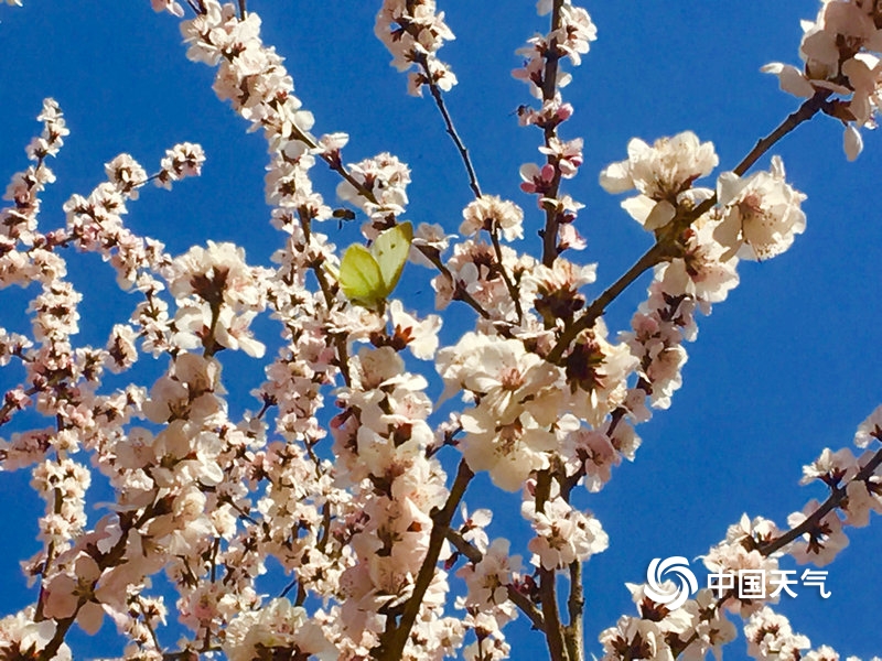 靖远桃花始盛开,玉蝶纷飞蜂寻蜜