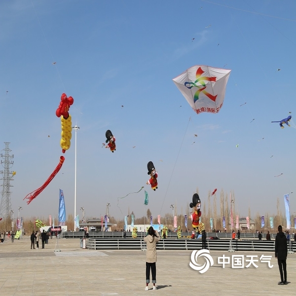 2019年04月01日 10:03刚刚过去的这个周末,第三届敦煌国际风筝节开幕,当天敦煌天气晴好,京剧脸谱、小动物等各种样式、特色鲜明的风筝在蓝天白云下飞舞,童趣满满,活动吸引了大量市民参与。(图/文 朱永锋)