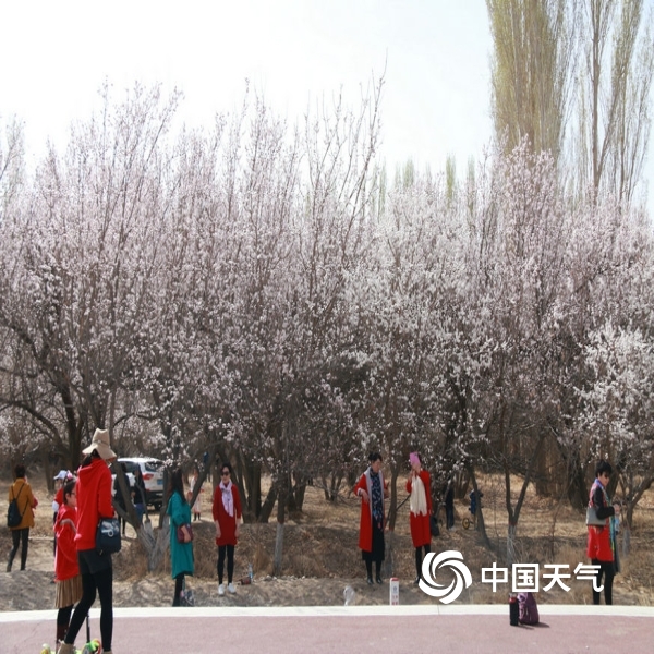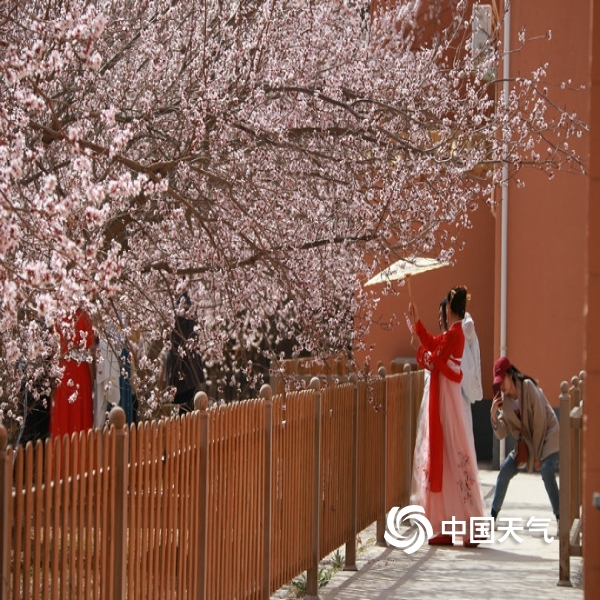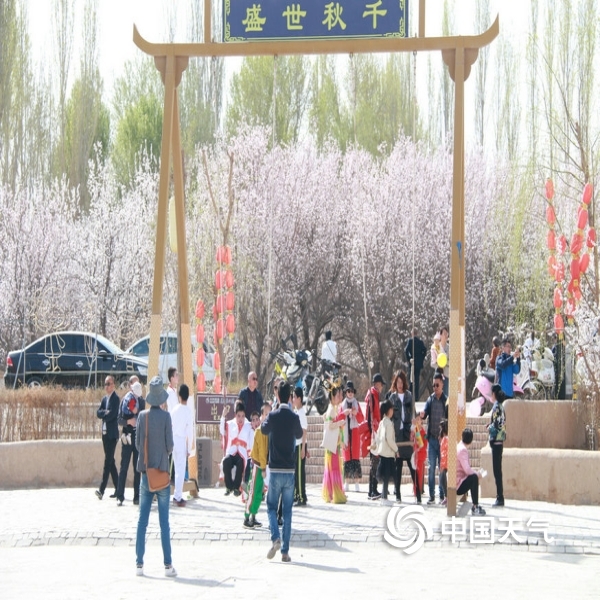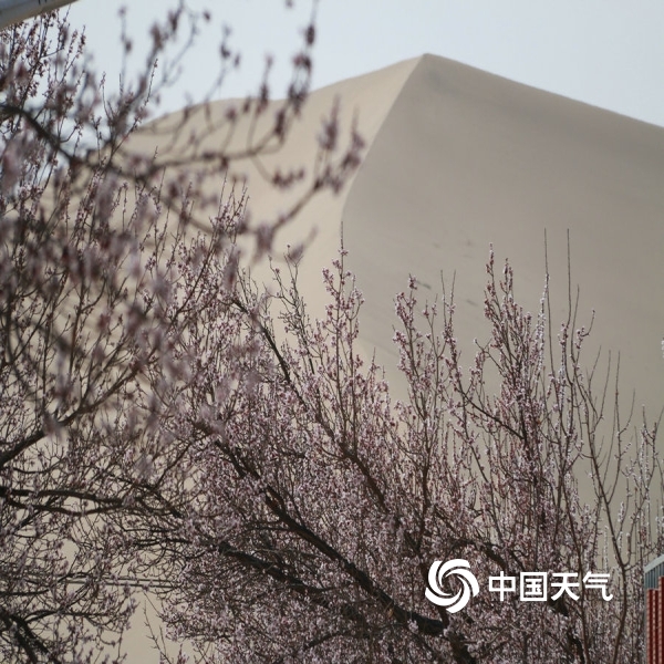 2019年04月08日 16:42近日,甘肃敦煌天气晴好,春光明媚。在鸣沙山下月牙泉村千亩李广杏园,杏花正开,神奇瑰丽的鸣沙山与开满枝头的娇俏花朵遥相呼应,成为一道亮丽的风景线,吸引了大量市民和游客观赏。