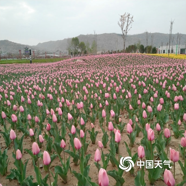 2019年04月22日 17:17近日,随着气温的回暖,康乐近万株郁金香与桃花、梨花、丁香花竞相怒放,万紫千红,如梦似幻,吸引无数游客前来欣赏。(李 娟)