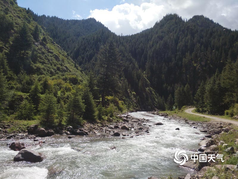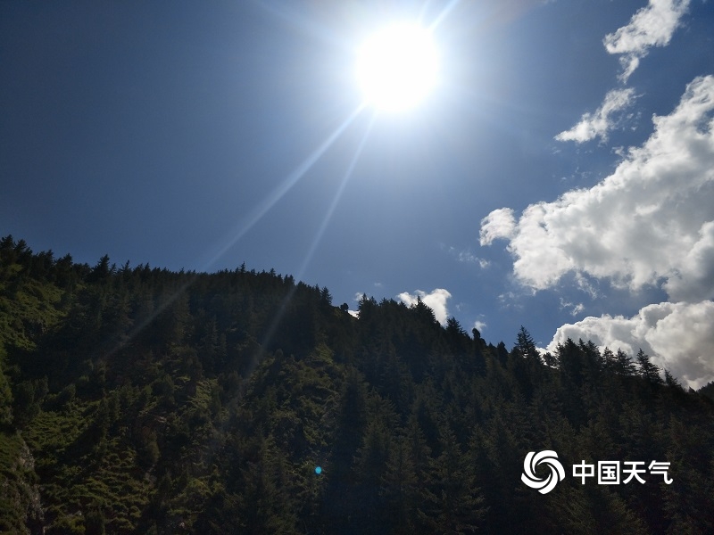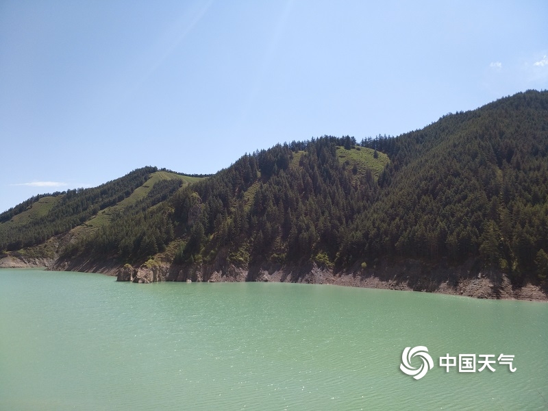 海潮坝夏日风景美如画。雨后的天空湛蓝如洗,白云洁净无瑕,崇山峻岭,碧波荡漾,松林如海,松涛如潮,构成了一副绚丽多姿的画卷。(民乐县气象局/冒立鑫)