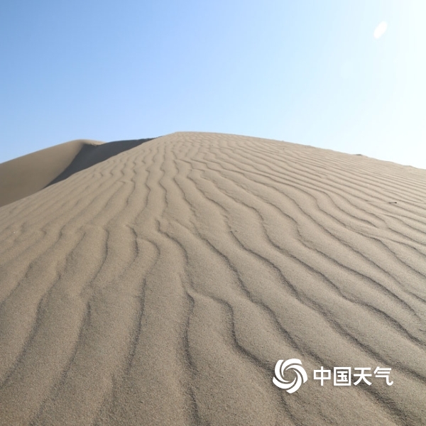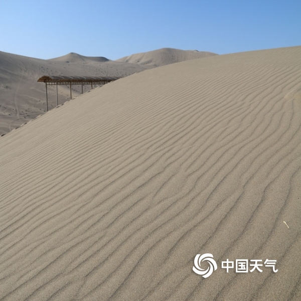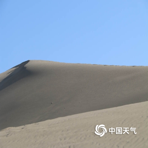 2019年11月11日 09:34中国天气网讯 图为吹风天气过后,鸣沙山的沙漠上留下了壮美的风之痕,犹如荡漾的水波般,令人不禁感叹大自然的神奇。(图/朱永锋)