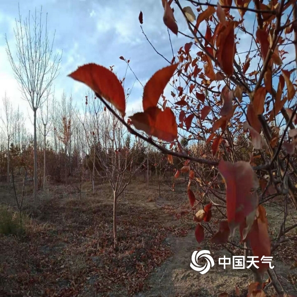 11月10日,风雪天气过后,玉门市云淡风轻,玉泽湖公园里松树依旧苍翠,杨柳垂着黄叶的枝条,其它树木已是片叶不剩、或仅挑着残存的些许树叶,呈现给人们一幅壮美的图画。(雷淑琴)