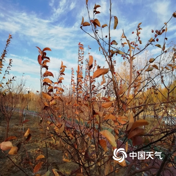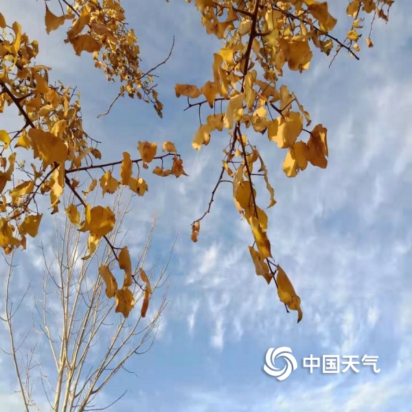 2019年11月11日 09:5011月10日,风雪天气过后,玉门市云淡风轻,玉泽湖公园里松树依旧苍翠,杨柳垂着黄叶的枝条,其它树木已是片叶不剩、或仅挑着残存的些许树叶,呈现给人们一幅壮美的图画。(雷淑琴)