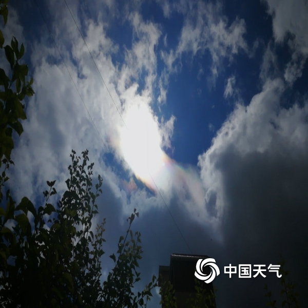 9日中午雨后天气放晴,白云悠悠,卓尼天际接连上演七彩云围绕太阳景观,随着云的变化七彩云也是多姿多彩,时而簇拥,时而萦绕,觉得真奇妙。(图/文:柴梅)