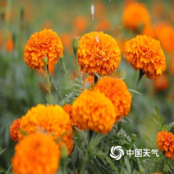 中国天气网讯 眼下,甘肃成县3.2万亩万寿菊怒放,进入采摘期,朵朵金黄色的花朵映衬着张张喜悦的笑脸,格外动人。万寿菊花朵提取的叶黄素有“软黄金”的美誉,从6月中下旬开始到霜冻期结束之前可开8—10茬花,平均每亩产量达3吨左右,是当地乡村振兴的致富花,幸福花。(图/夏玄)