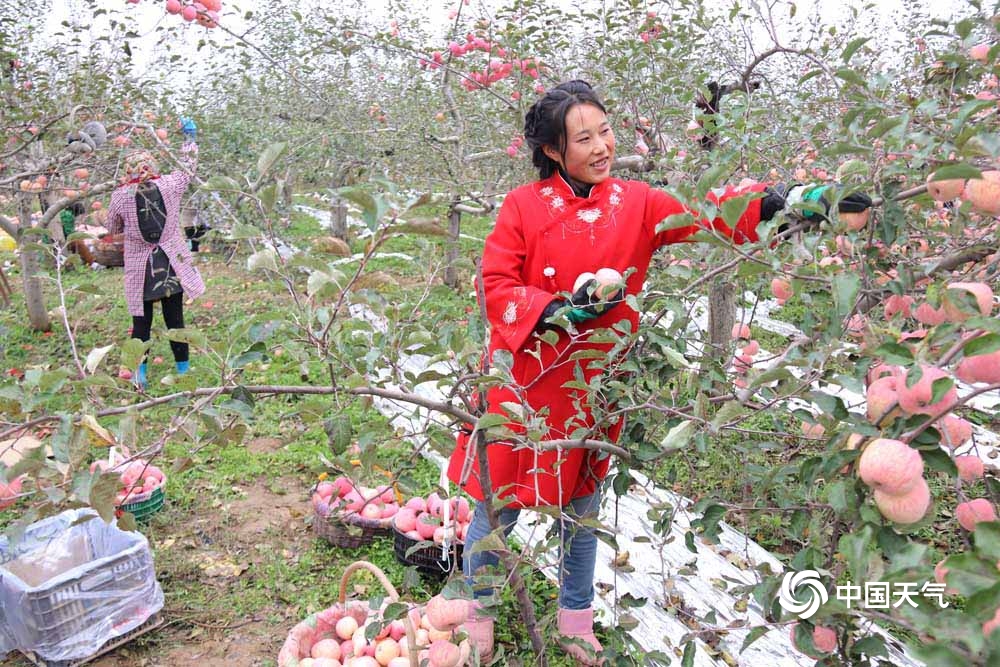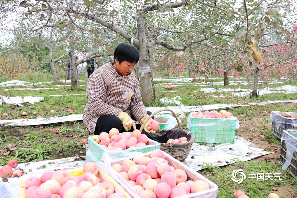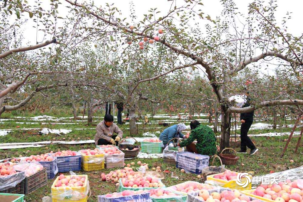 受连阴雨侵扰 甘肃庆城苹果延迟采摘