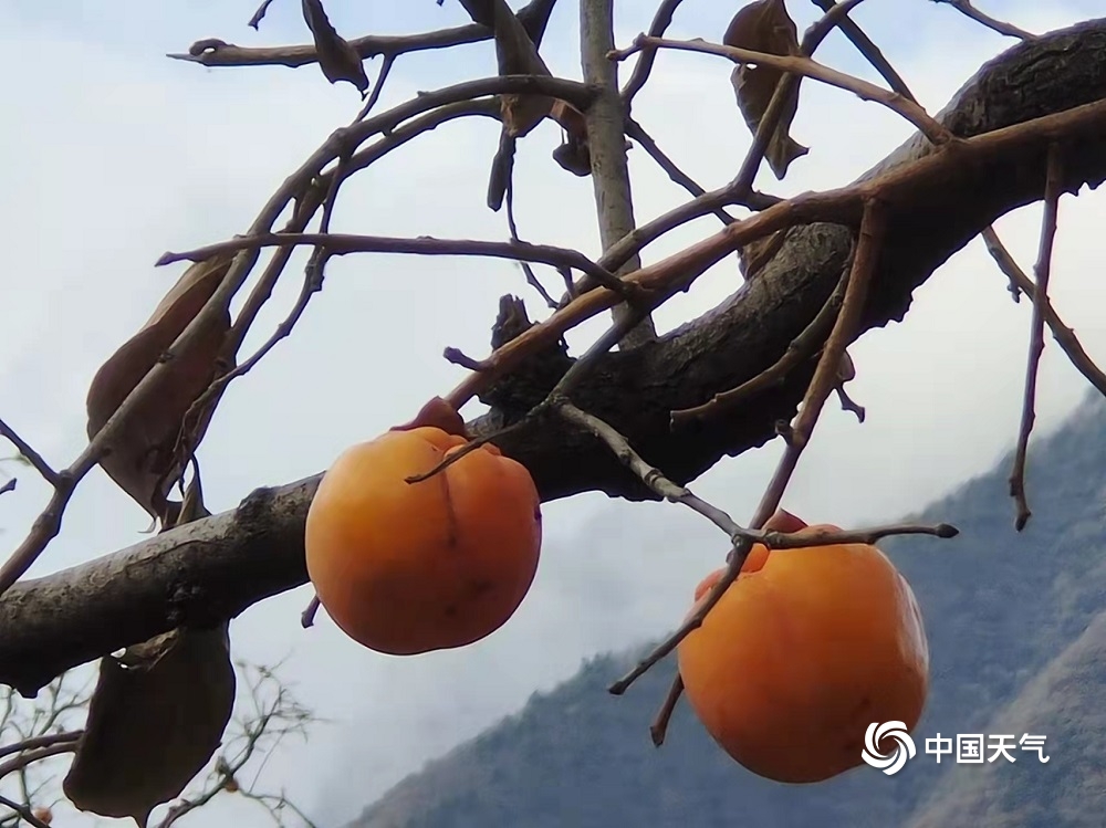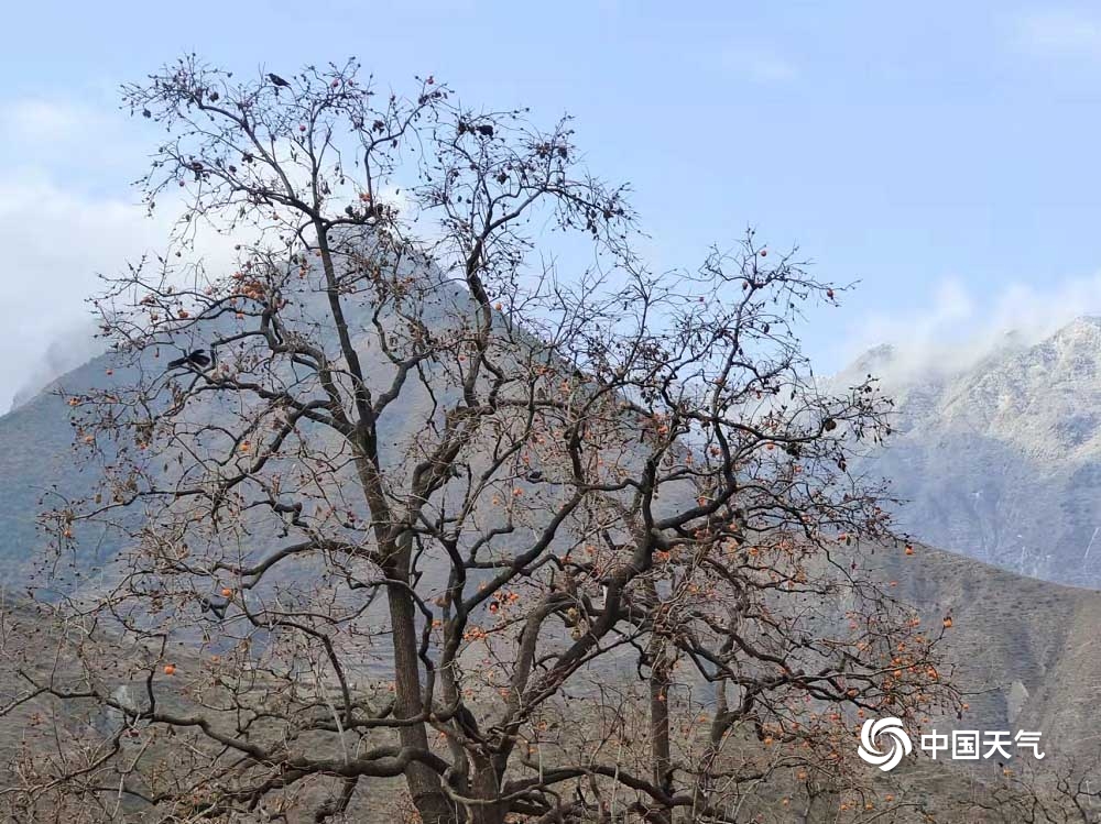甘肃舟曲:枝头未见半点绿 唯有柿树挂灯笼