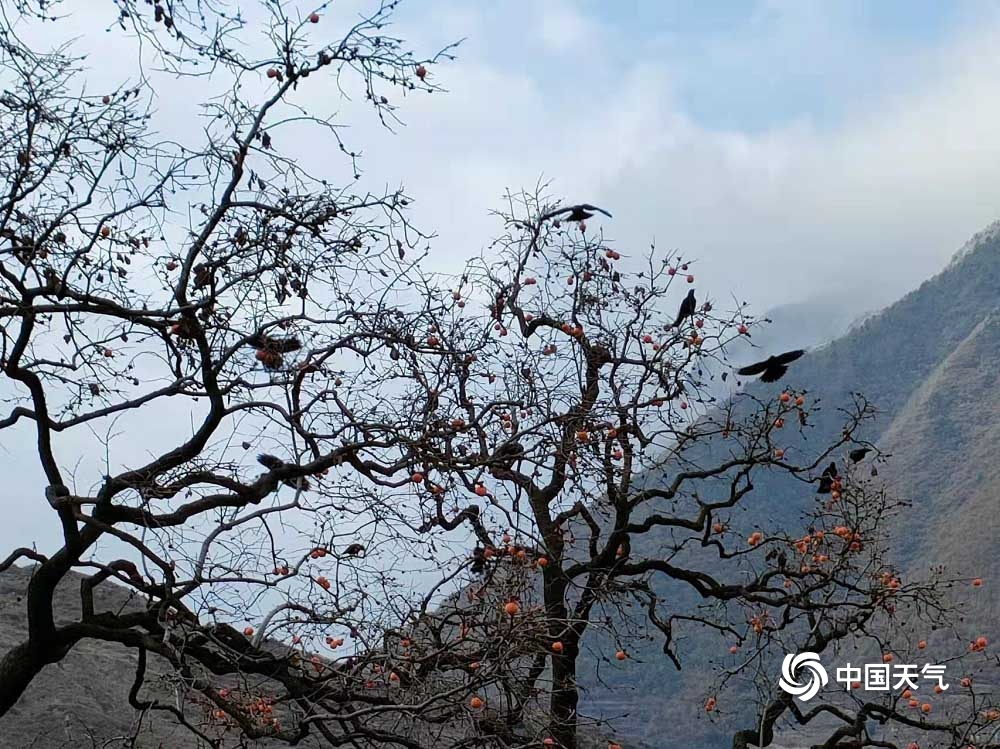 29日雪后的清晨,甘肃舟曲的柿树成了鸟儿们的欢乐场,那柿树的千枝万杈挑起了一盏盏红灯笼,肆意撒欢,尽染层林。