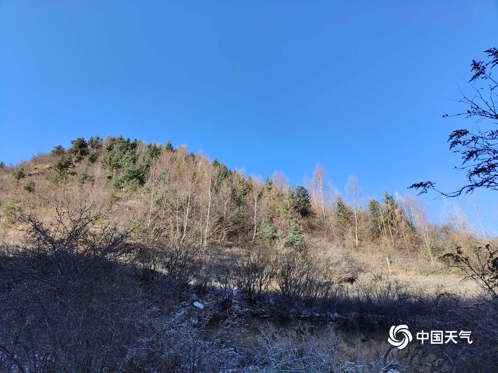 12月9日,甘肃卓尼县霜浓如雪,太阳高照,天空湛蓝,万物在暖阳下披上银装。(图/文:柴梅)
