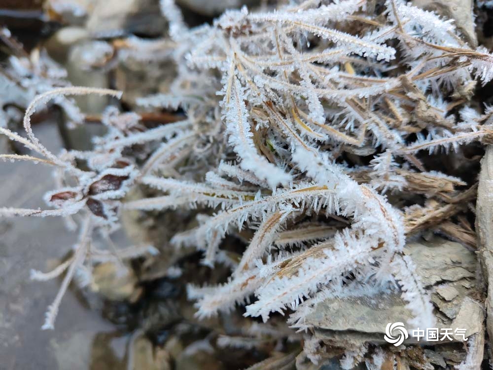 甘肃卓尼晨霜浓如雪 太阳高照