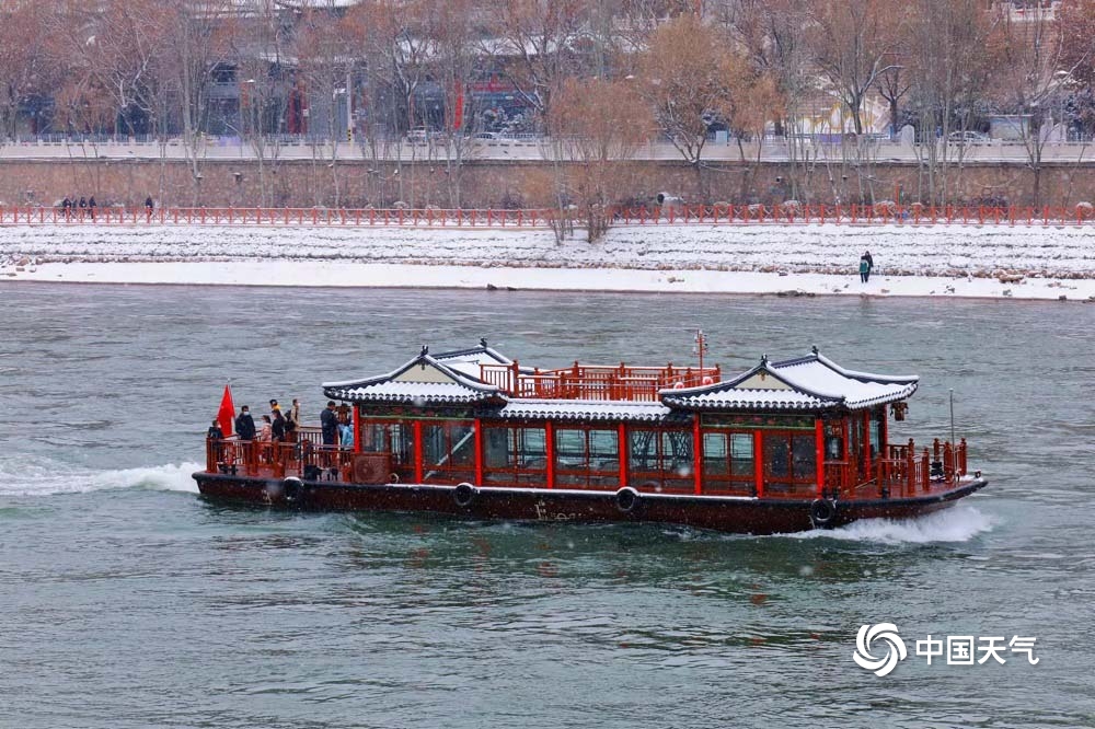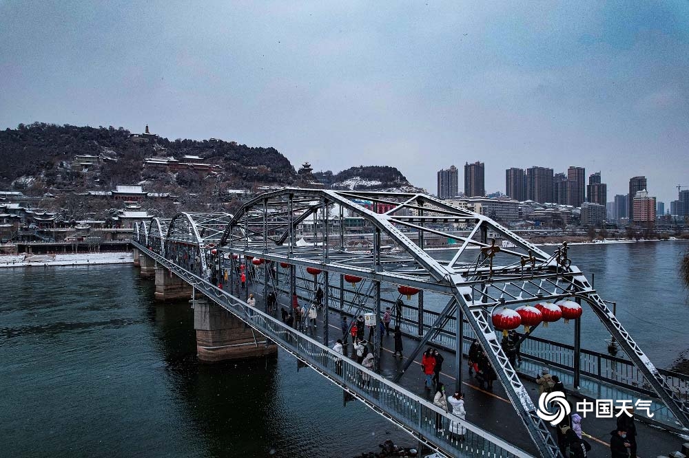 甘肃兰州迎降雪 映衬黄河两岸美景
