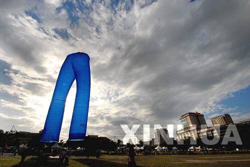 3月18日,在马来西亚联邦行政中心普特拉贾亚,来自荷兰的“蓝色牛仔裤”热气球准备升空。