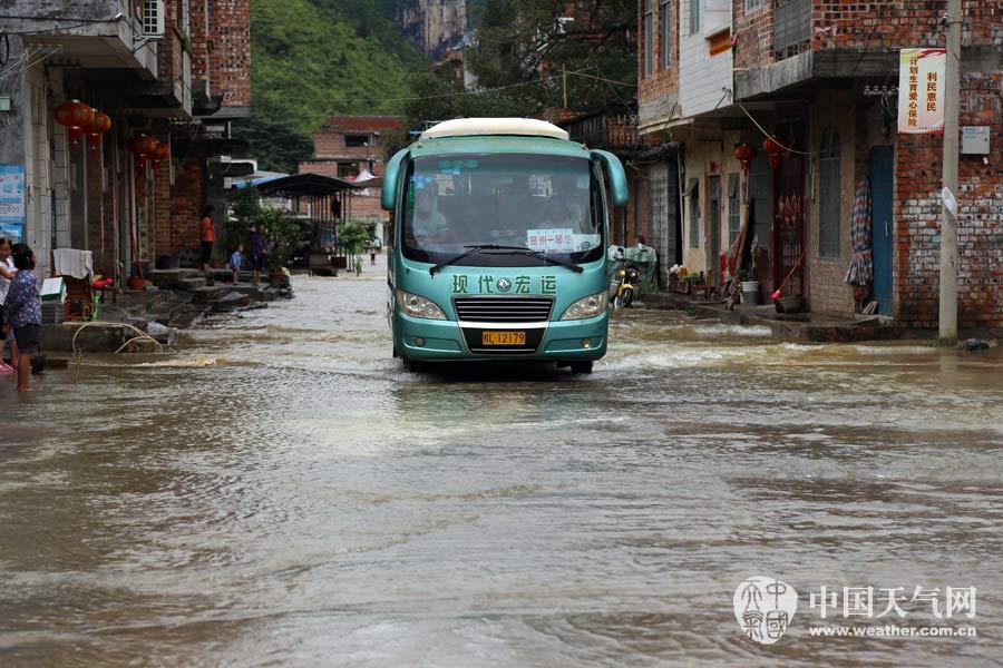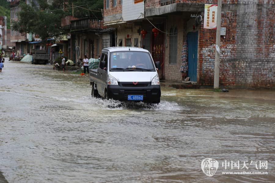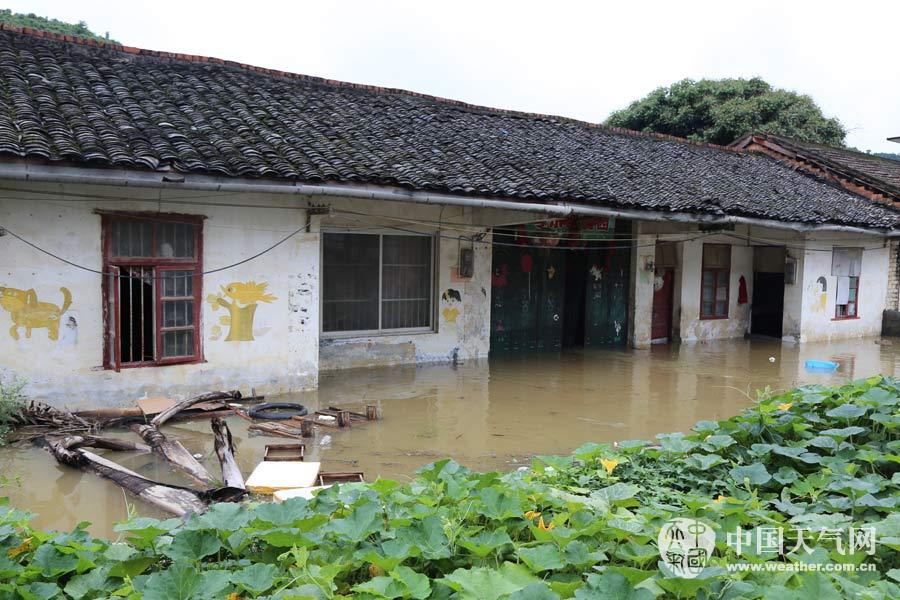 田阳:房屋被淹,老人小孩已安全撤离(摄影:王春娟)