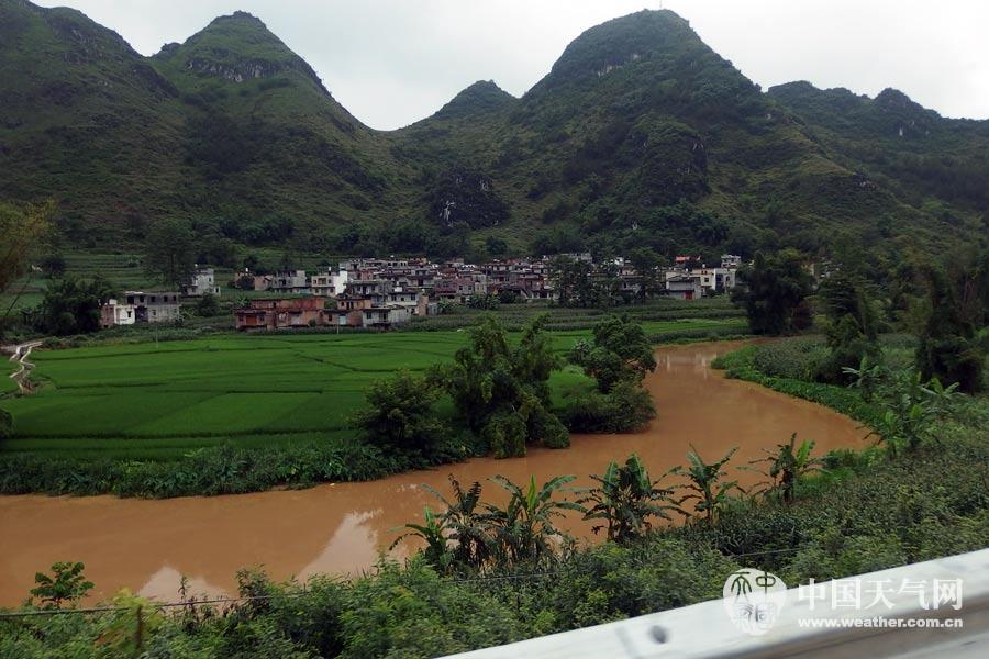 田东:江城镇的河水因连日强降雨已变混浊(摄影:黄伟圣)