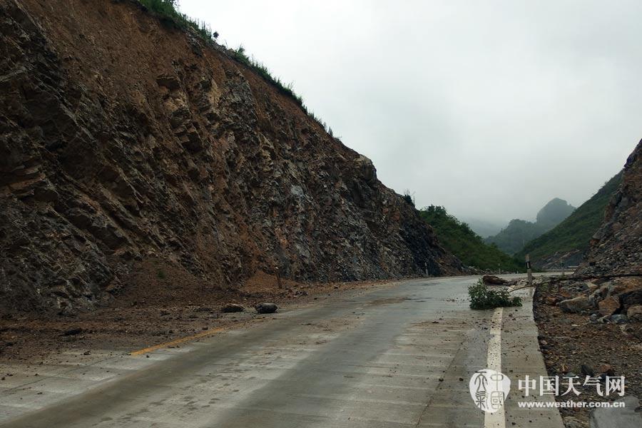 田东至天等的国道G243江城镇路段出现了落石和塌方(摄影:黄伟圣)