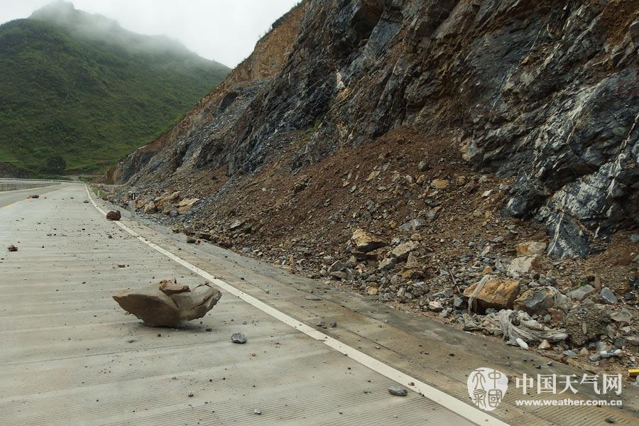 田东多条公路出现落石影响交通(摄影:黄伟圣)
