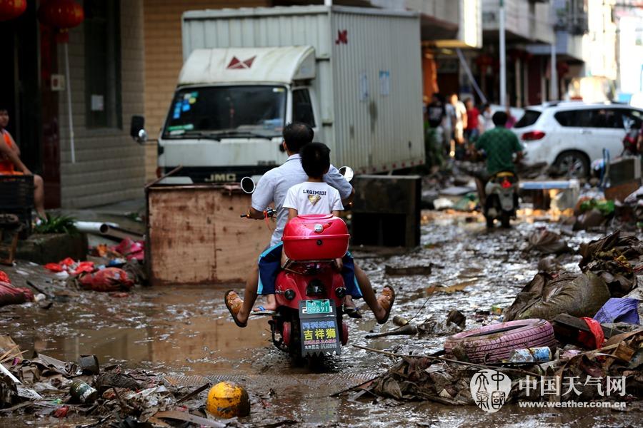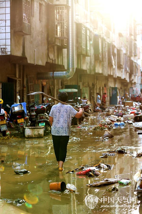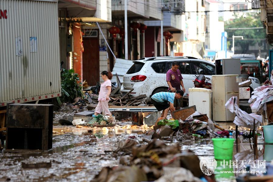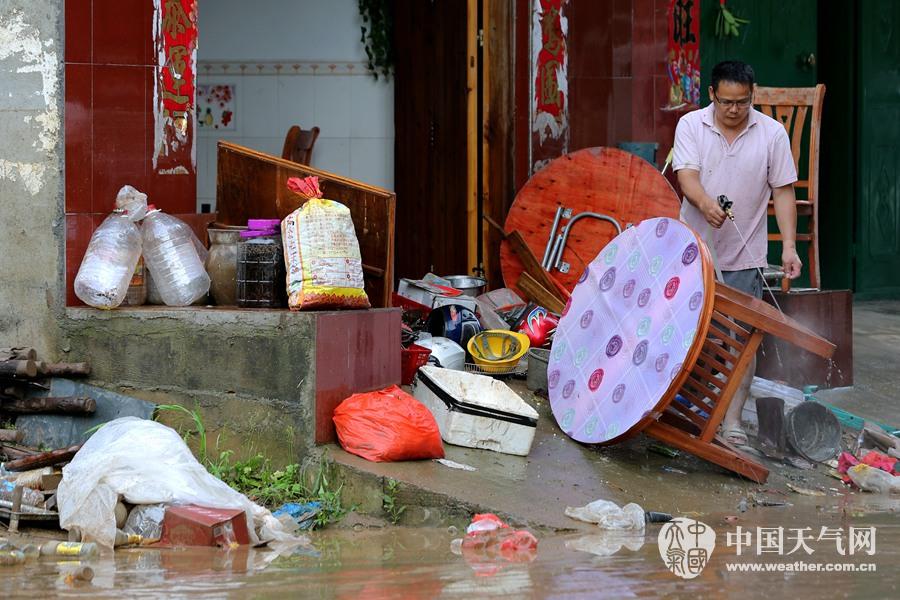 居民在清洗被洪水浸泡过的家具(摄影:刘英轶)