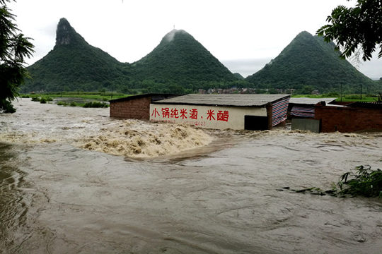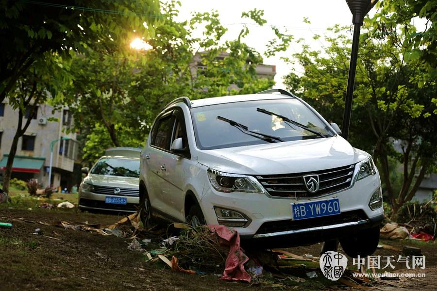一辆被灯柱卡住的小车,幸运的未被洪水冲走(摄影:刘英轶)