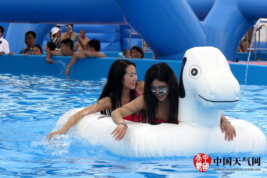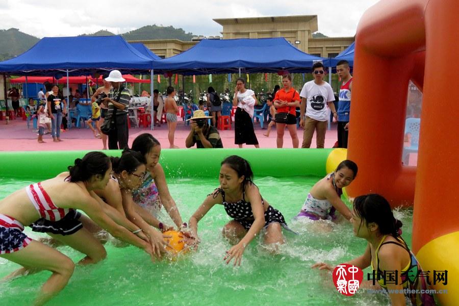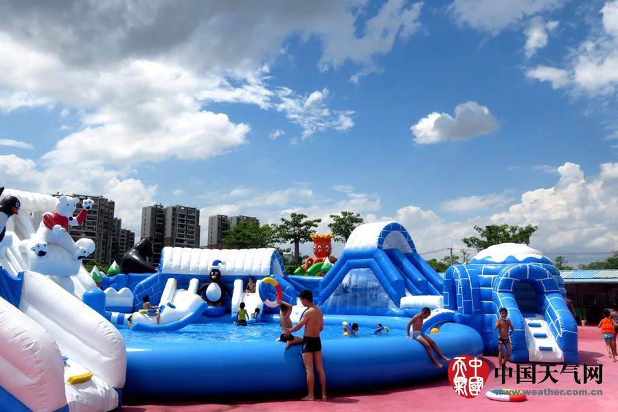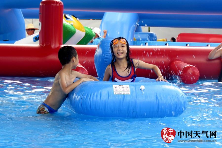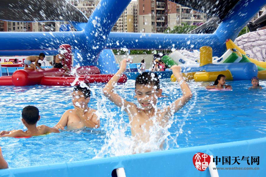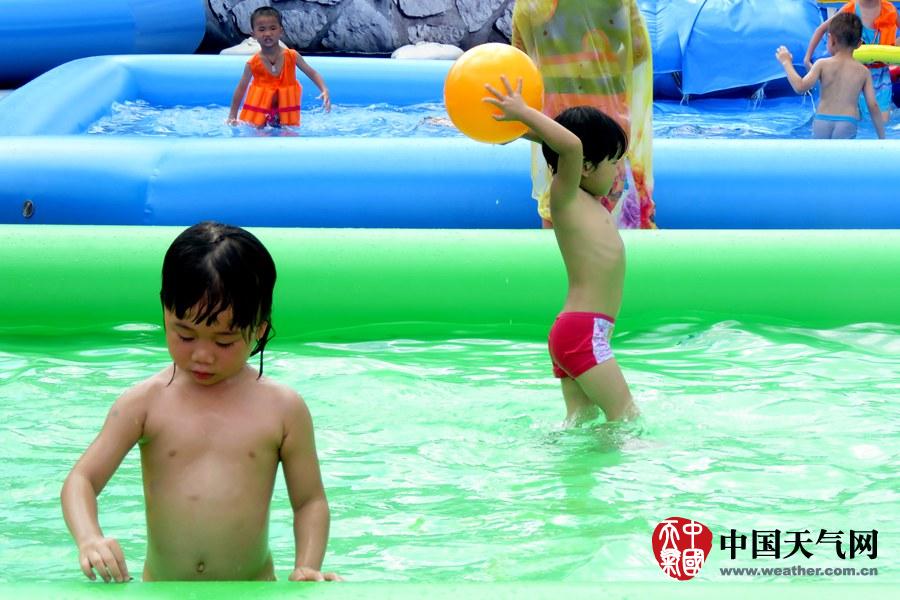 宝宝们在浅水池玩水,消暑也安全(摄影:钟晓云)