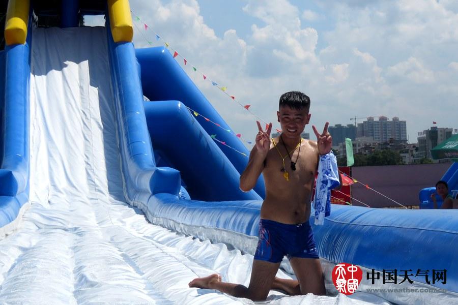 夏日天使们进行飞龙滑梯接力赛,看谁能得第一(摄影:钟晓云)