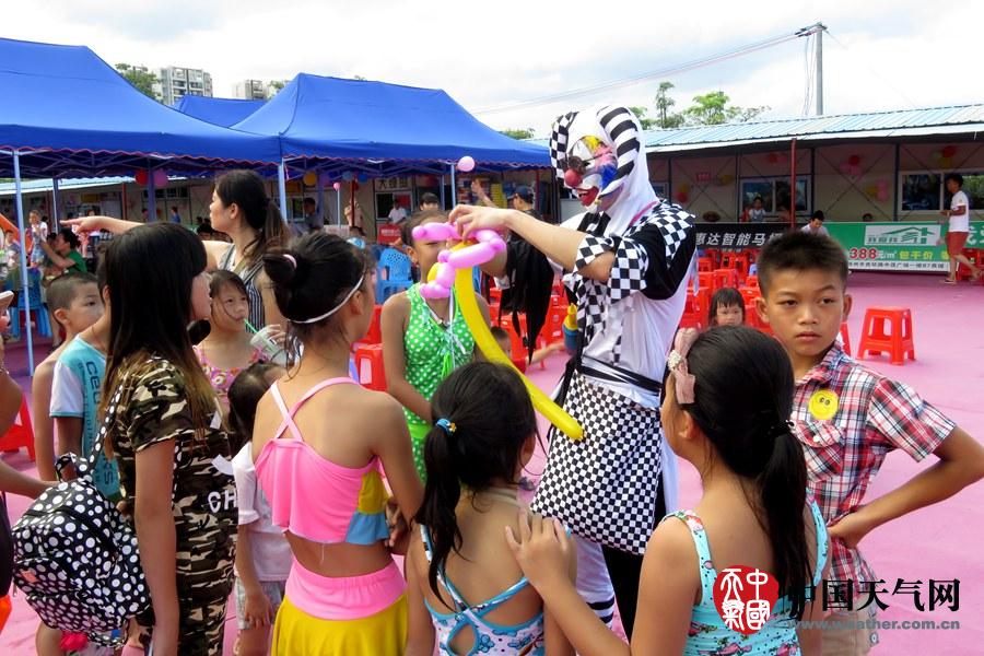 乐园小丑为孩子们做气球造型(摄影:钟晓云)