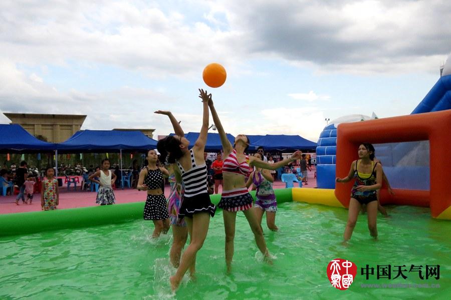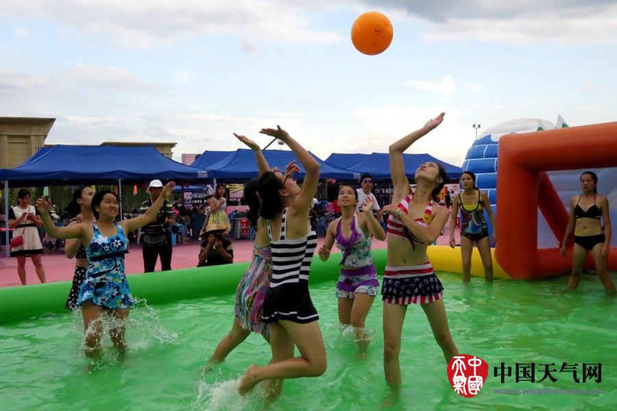 水上手球比赛,姑娘们抢球挺厉害(摄影:钟晓云)