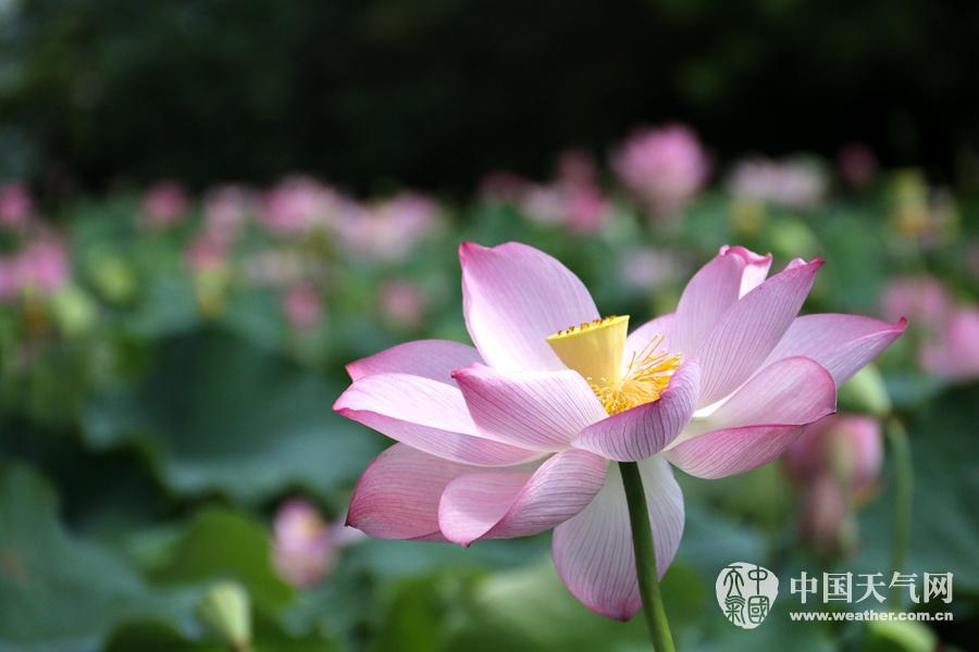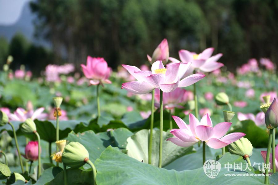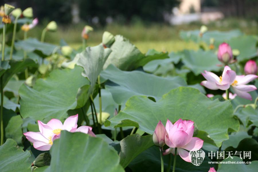 一枝枝荷花,含笑伫立,娇羞欲语。
