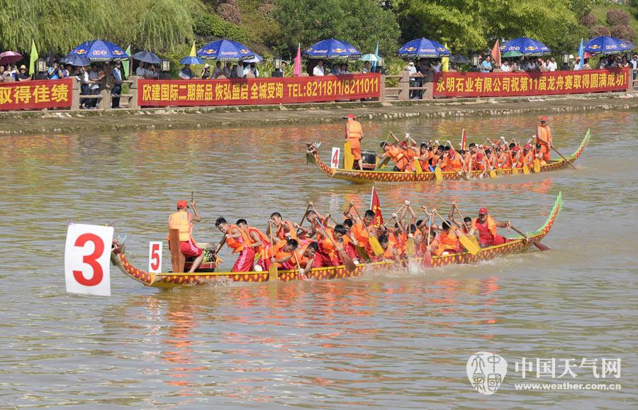 岑溪龙舟健儿不惧高温奋力角逐(摄影:胡本伟)
