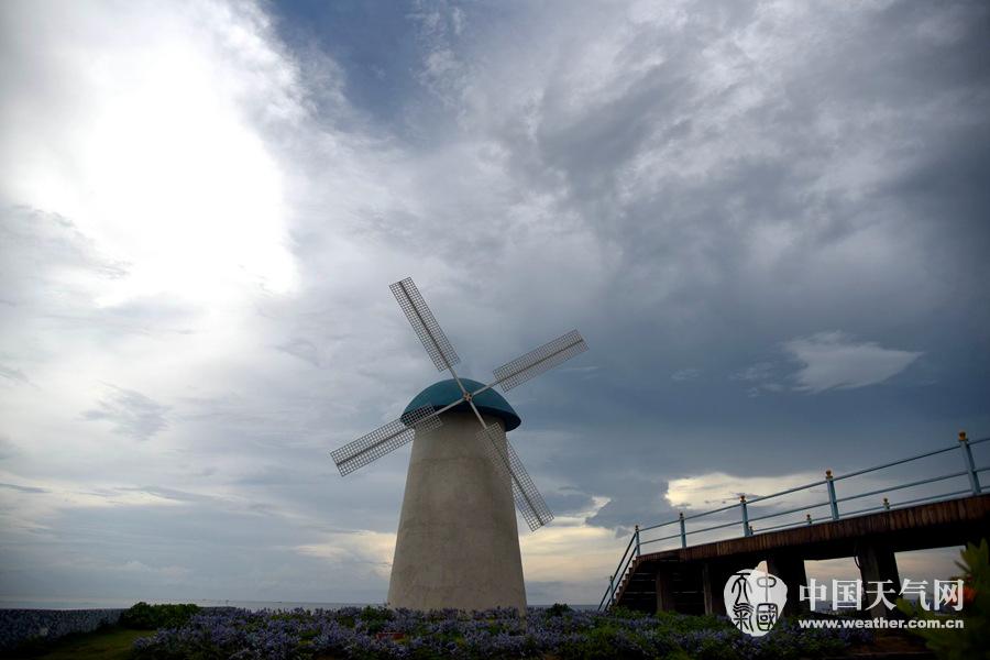 云烟背景下的风车模型更添一份浪漫的情愫(摄影:罗思泽)