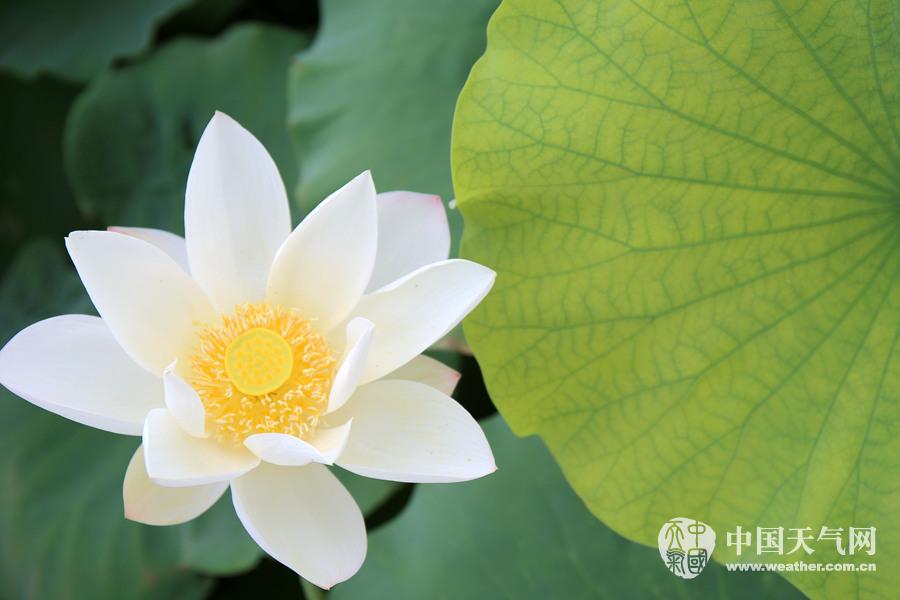 白荷花呈现出一种冰清玉洁的高姿态(摄影:梁海玫)