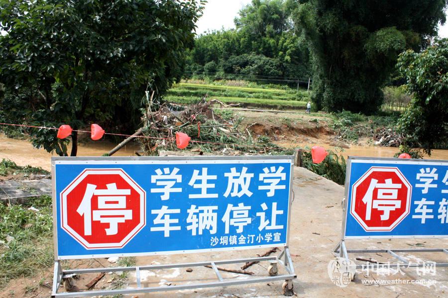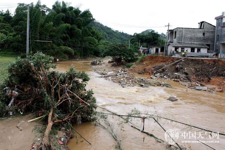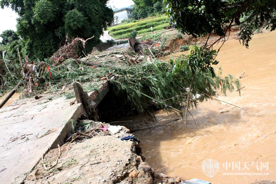 被洪水冲塌的沙垌镇金汀村大桥(摄影:李书宇)