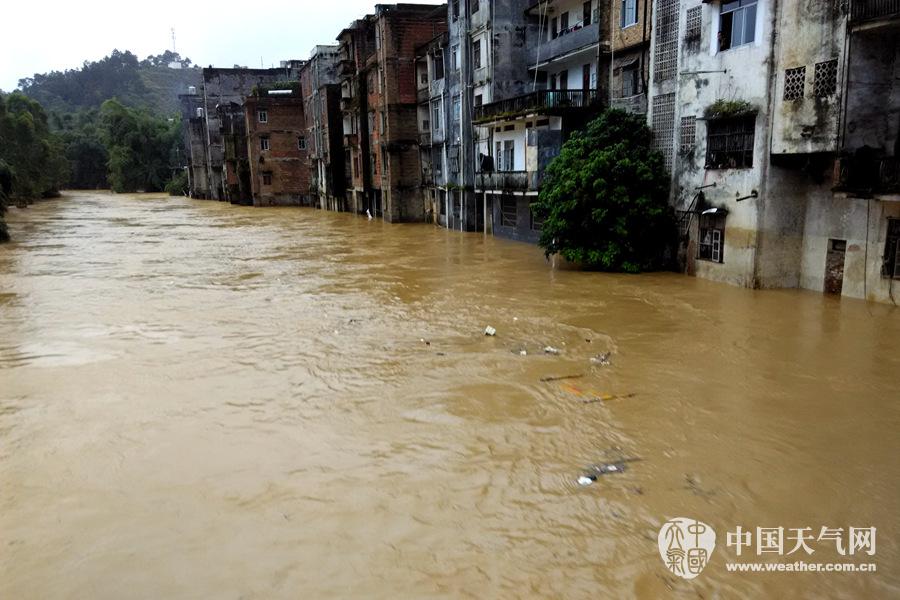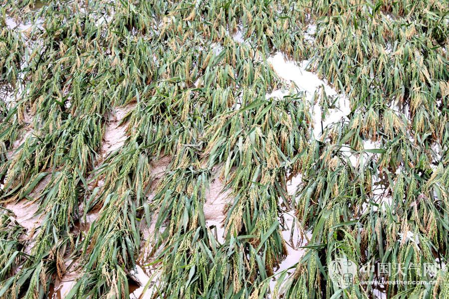 沙垌镇被淹,快成熟的水稻出现倒伏(摄影:李书宇)