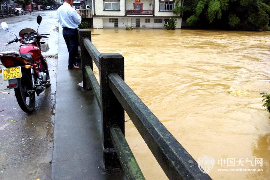 洪水冲塌的金汀大桥导致车辆无法通行(摄影:李书宇)