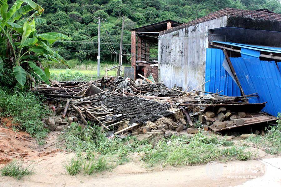 沙垌镇金汀村倒塌的民房(摄影:李书宇)